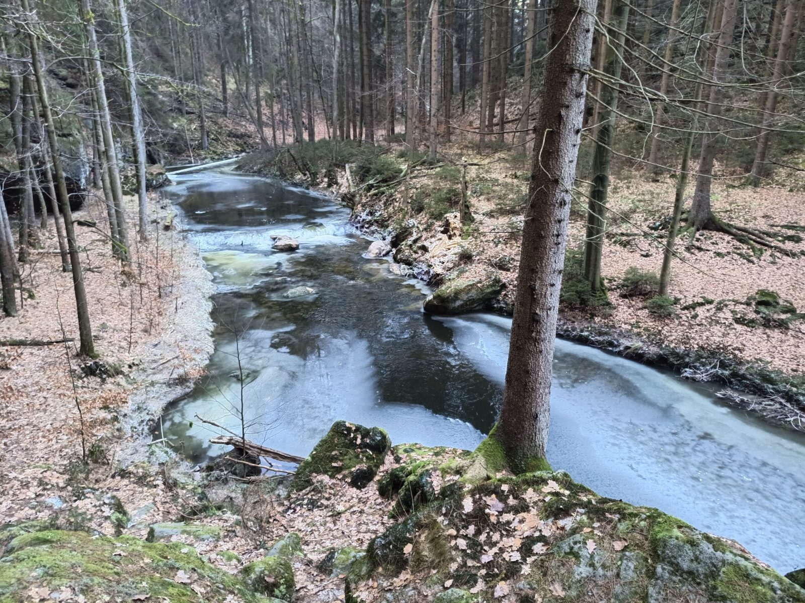 Schön wars trotzdem und sobald das Eis getaut ist, wird ein neuer Versuch gestartet. Die Dittersbacher Felsenwelt bietet abseits der Hauptwege viele Kombinationsmöglichkeiten in Verbindung mit dem Kammweg zwischen Hohenleipa (Vysoka Lipa) und Kaltenberg (Studenec). Man muss ja nicht unbedingt nur da entlang gehen, wo es alle tun.;-)