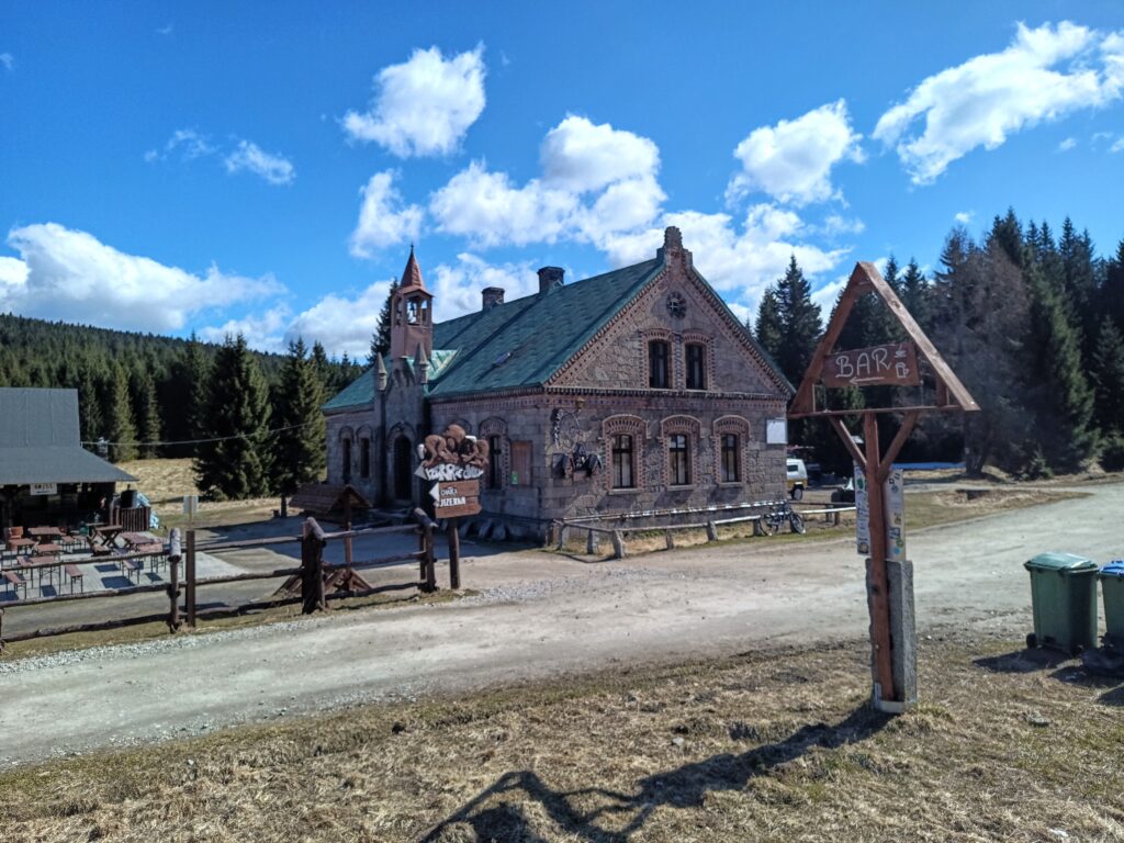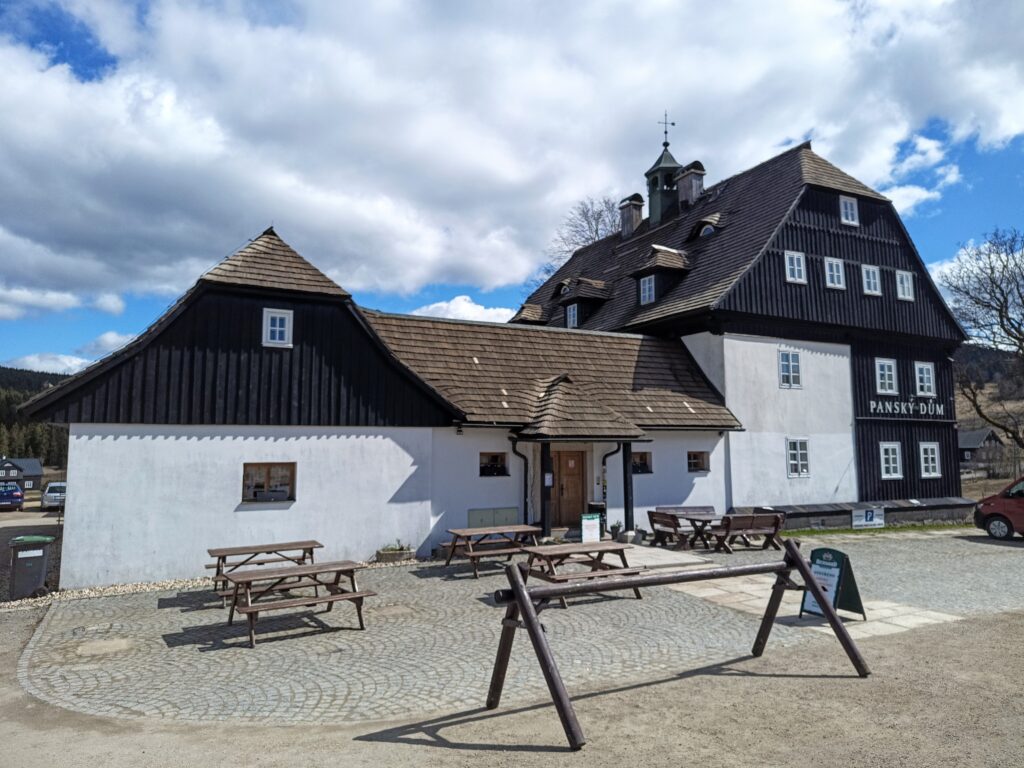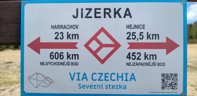 Von Hoffnungthal (Hoftik) aus geht es abschließend für eine knappe halbe Stunde bergauf zur einstigen – ebenfalls niederschlesischen – Sommerfrische Strickerhäuser (Mytiny) und zum Bahnhof Harrachsdorf (Harrachov), wo bereits der Bus Nr. 942 darauf wartet, uns zum Quartier zu bringen. Wir waren bei dieser Tour sowohl auf dem Kammweg als auch auf der Via Czechia unterwegs.