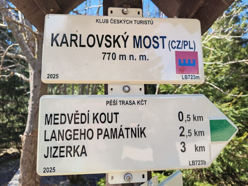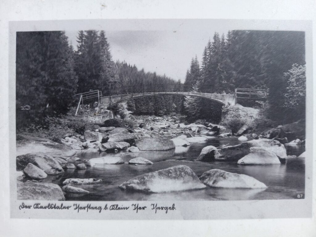Bestes Wanderwetter begrüßte uns am Morgen des zweiten Tourentages. Nach der Erfahrung der 1. Tour entschieden wir uns dafür, diesmal ins etwas tiefer gelegene Isergebirge zu gehen. Als Etappenziele nahmen wir uns Orle (Carlsthal), die Karlsbrücke über die Iser – nicht zu verwechseln mit der gleichnamigen Brücke in Prag – und Klein-Iser (Jizerka) vor. Start war in Harrachov (Harrachsdorf) direkt an der tschechisch-polnischen Grenze. Dieser alte Waldweg war nach 1945 lange tabu und wurde erst nach der politischen Wende wieder, was er einmal war.