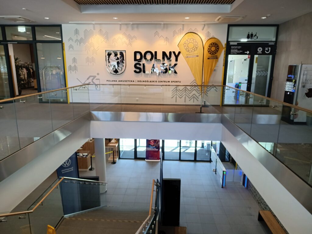 Nach der erlebnisreichen Tour am Vortag sollte am 3. Tag eine etwas ruhigere Rundtour folgen. Ruhig wurde sie auch, aber nicht kürzer. Vom Start in Harrachsdorf, Neue Welt ging es zunächst wieder auf dem alten, grenzüberschreitenden Wanderweg in Richtung Orle (Carlsthal). An der Unterstandshütte trennen sich die Wege nach Orle und nach Jakuszyce (Jakobsthal). Diesmal bogen wir in Richtung Jakobsthal ab. Das Streckenprofil ist eher flach, der Untergrund meist asphaltiert und an schattigen Stellen war er vereist. Die Route verläuft im wesentlichen parallel zur Bahnstrecke zwischen Harrachov und Jakobsthal. Im Ort angekommen bestaunten wir das schmucke Biathlonstadion mit angeschlossenem Hotelkomplex, Bahn- und Bushaltestelle und Restaurant. Wir waren die einzigen Gäste und das freundliche Personal langweilte sich sichtbar.